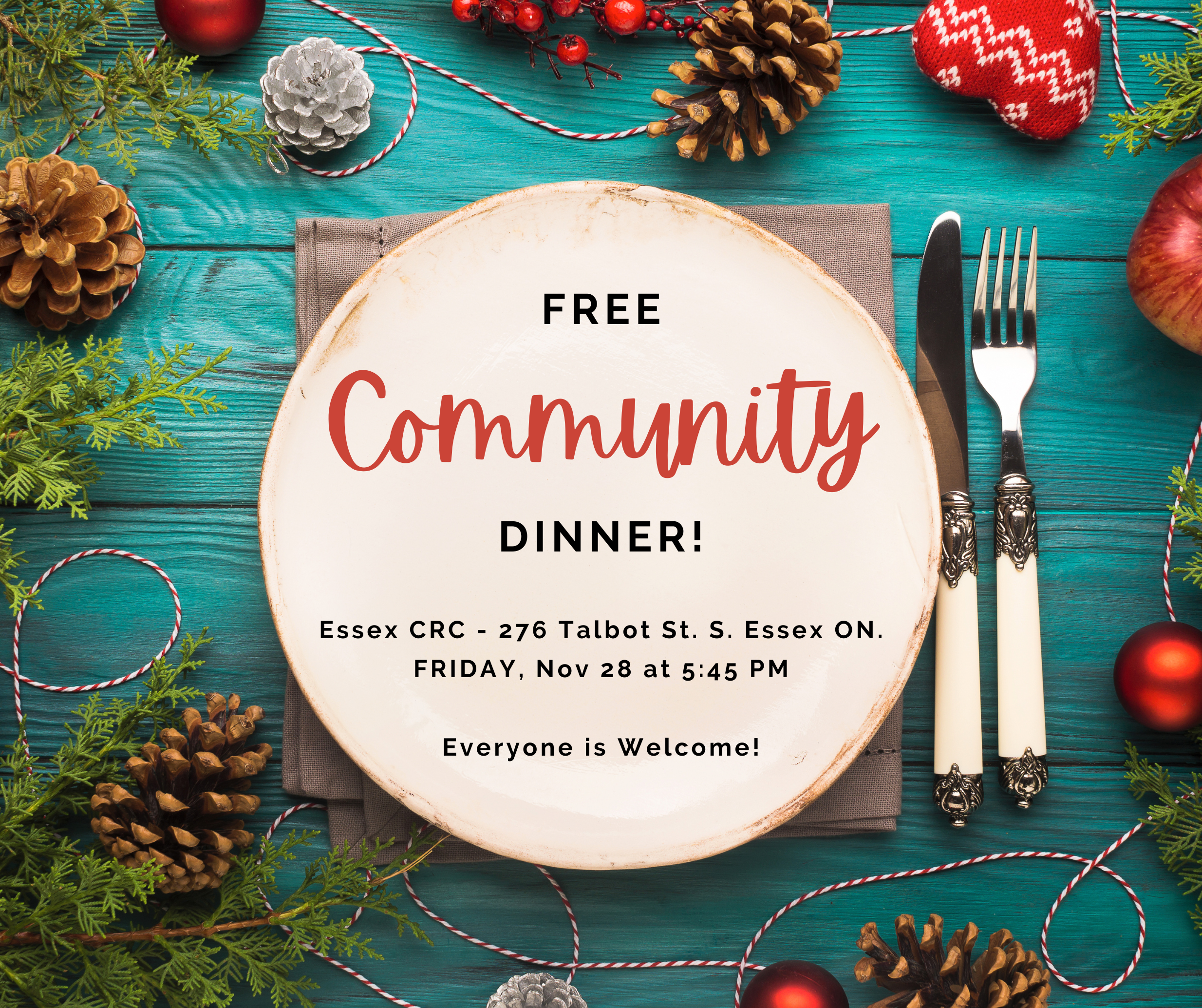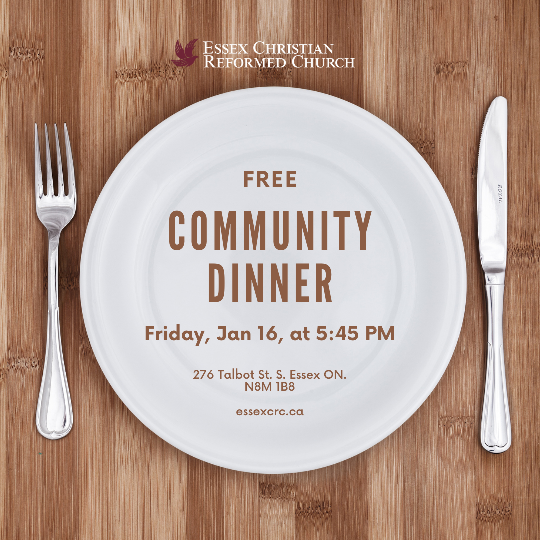 If you or your family would benefit from a Free Community Dinner, please come enjoy a warm meal, good company, and a welcoming space for all.