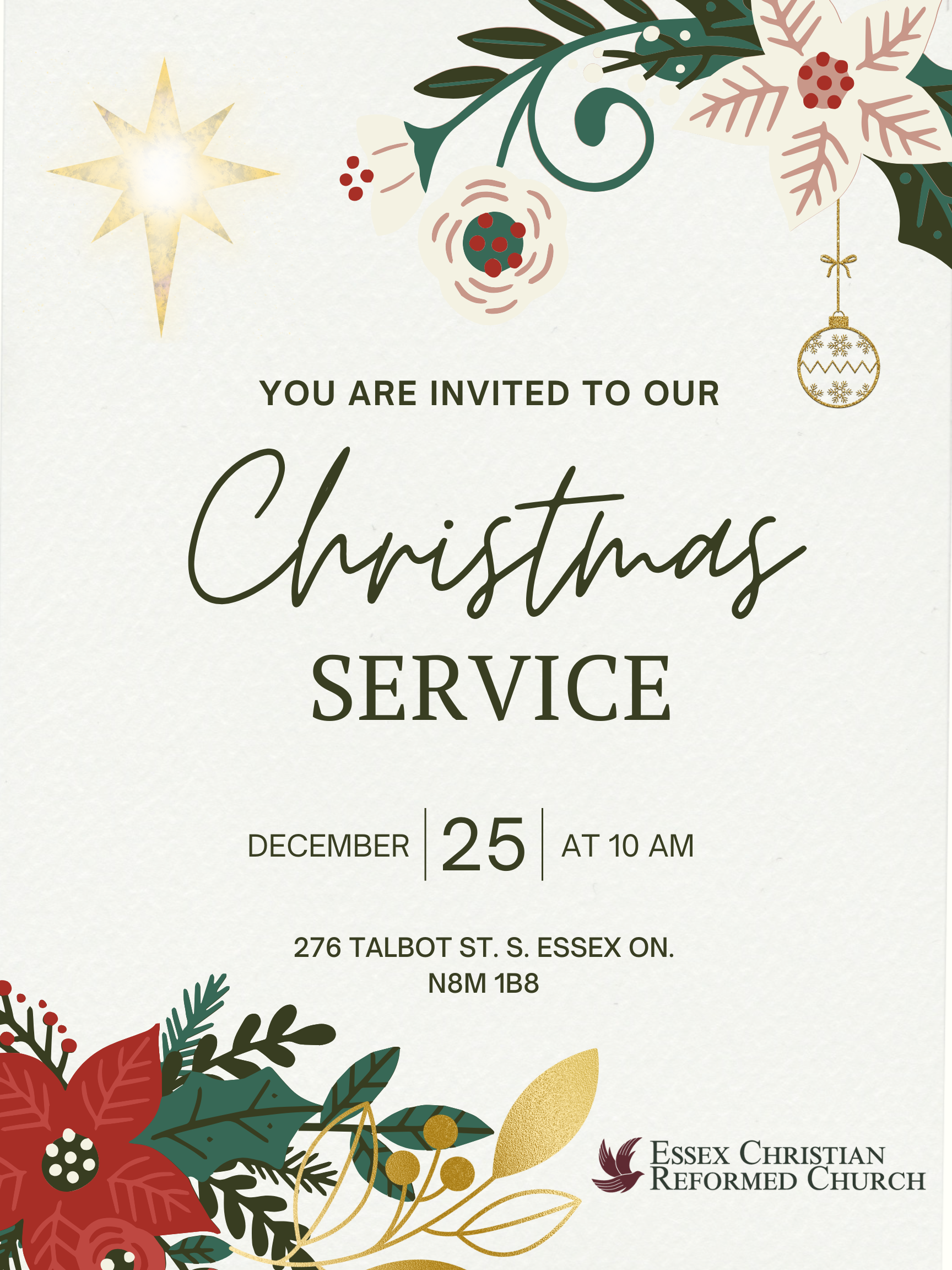 Celebrate the joy of Christmas with us! Join us on December 25 at 10:00 AM for a beautiful Christmas Day service as we gather to worship, reflect, and rejoice in the birth of Jesus. This special morning will be filled with the hope that Christmas brings to our world.