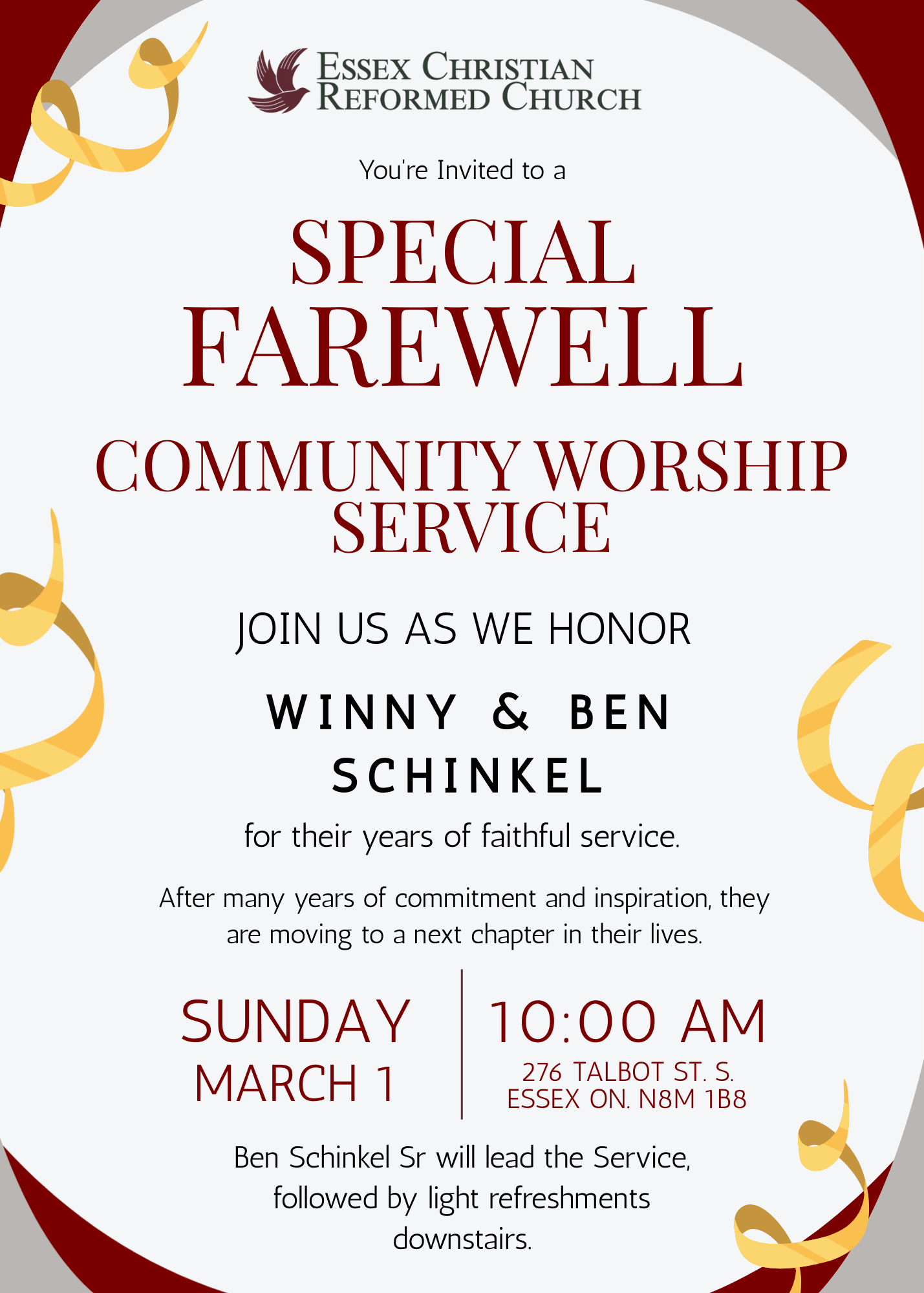 On February 25, we will host at Essex Christian Reformed Church.